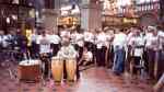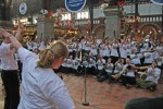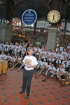 På Fredagseftermiddagen invaderades centralstationen av didjeridu spelare. God Afton Danmark Tv2 sände direkt när gruppen framförde historien om Mary & Frederik. Efter TV framträdandet gick de flesta av oss vidare till den kända krogen Krasnapolsky där vi framförde didjeridu toner i utbyte mot det något annorlunda gaget öl! På Fredagen var det så äntligen dags, hela Köpenhamn var i upplösningstillstånd av glädje, snart skulle bröllopsklockorna ringa. På Rådhusplatsen hade en gigantisk scen byggts upp där vi inför tusentals personer skulle framföra vårt stycke. Vi hade alla på oss de T-shirts som vi fått av My Planet. Vi fick två fina extra gäster i vår orkester i form av två Aboriginer från Perth, som även de framförde ett solonr. Vi klev upp på scenen vid 12.25 och körde igång, dirigerade av Karsten inleddes berättelsen om hur Frederik mötte sin Mary. I slutet av berättelsen var det dags för mig att kliva fram och ensam framföra ett solonr.