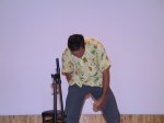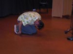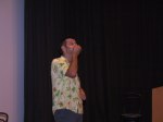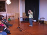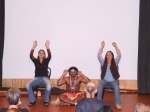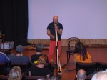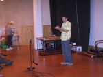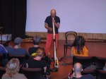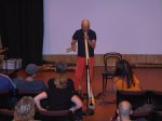 Audun Eriksen från Bergen i Norge bjöd på en spännande didjeridu show, tystnaden kom när han plockade fram en liten elektrisk massageapparat som han drog först mot halsen och sedan på kinderna, fram kom fantastiska ljud. När maskinen fördes mot halsen lät det som strupsång och på något märkligt sätt tyckte jag det lät som en mungiga när han förde maskinen utanpå kinden. Hoppas vi snart får möta Audun på de svenska scenerna igen. Desto mer högljudligt blev det under sista framträdandet när didjeridu importören David Braunsthale bjöd på en show som fick publiken att skrika av skräckblandad förtjusning. Ballonger drogs genom näsan ut i munnen, en spik fördes in i näsan och slutligen en jätteballong rakt ner i svalget.