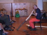 På plats såldes också didgeridoo magazine, en tidning om bara didj för alla oss didjälskare. Stor uppmärksamhet gjorde även Örgen Karlsens jättedidjeridu på över 2 m och med en klocka stor nog att stoppa in huvudet i, ljudet blir extremt massivt och fyller hela rummet med tungt basljud. Nyfikenheten var också stor på hans mer normala instrument, beställningarna ramlade in så Örgen behöver inte vara sysslolös i vinter. Vilket också innebär att vi med stor sannolikhet får med oss ”bigbear” på nästa resa downunder.
