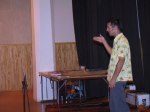Kl 11.00 på Lördagen inleddes konventet, först ut var jag själv Lars Wallin med en föreläsning om didjeridu resorna som äger rum varje år till Australien. Dia bilderna lockade flera att redan på plats anmäla sig till nästa resa som blir i augusti -03. Yidaki Groove, Stockholms bandet som nyligen släppt en kritikerrosad cd klev därefter på scenen. Yidaki groove presenterar en spännande mix med div trummor, bas, didjeridu och sång.