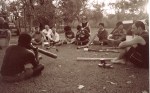 Morgonen därefter reste vi iväg mot East Alligator river, vi passerade in i Arnhem Land och begav oss in i bushen, därefter satt vi och kikade ner i floden där vi kunde se flera stora 4 meters krokodiler. Dagen efter reste vi åter över floden med våra bilar nu med sikte på Oenpelli/Gunbalanya Community. Det är alltid intressant att se kontrasterna, det är en helt annan värld jämfört med städerna i Australien. Vi besökte först Injalak Art center där vi shoppade lokal konst, didjeridus mm. White Cockatoos nya dansare Rex har sina rötter i Oenpelli så vi hälsade sedan på hans familj.