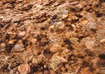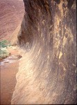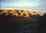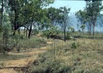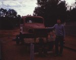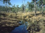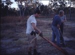 Dagen efter begav vi oss tillsammans med David och Tom in till Katherine för att inhandla verktyg. Sågar, filar, yxor, sandpapper, kundvagnen fylldes snabbt med allt som vi kunde tänkas behöva under den kommande veckan. På vägen tillbaka pekade Tom mot något som med god vilja påminde om en avfart. Vi stannade till och svängde av vägen med vår 4wd bil, vårt mål var en torkad flodfåra. De gamla männen ville visa var vi senare skulle kunna hitta de stenar som man skapar färg av. Vi stannade bilen och promenerade i hettan. David stannade och tog av toppen på ett termitbo för att visa oss hur dessa små gynnare ser ut. Termiterna äter ur innehållet på eukalyptus träd och efterlämnar urholkade trädstammar lite varstans i naturen. Vidare på resan tillbaks pekade David ut några grottor där det för inte så länge sedan bott människor.
