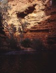Efter att ha tagit avsked av mina nyblivna släktingar och vänner begav vi oss vidare österut i Arnhem Land. Vårt mål var ett avlägset vattenfall där vi skulle övernatta på sand stranden. Platsen ligger så avlägset och otillgängligt att endast lokal befolkningen känner till den. Det vi fick se var ett paradis, en örn seglade förbi längs vattenytan och det var så vackert att tårarna nästan kom. Vi slet av kläderna och dök i vattnet vid vattenfallet för att svalka våra varma kroppar. Namnet på den del där vi badade heter Mimi pool och är en dreaming plats. Här sägs det bo mimi andar, Mimi är en jord ande som ofta spelar människor små spratt ute i bushen. Vi tog oss runt sjön nedanför vattenfallet och slog läger vid sandstranden, vi simmade och plaskade i det varma vattnet. Efter att ha lagat mat över den öppna elden vandrade vi vidare på upptäcks färd längs sand stranden.