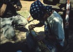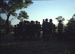 Kvällarna som följde bjöd på något av det mest spännande jag upplevt i hela mitt liv. En stor ceremoni skulle starta för att hedra en ung pojke som skulle initieras. Vi satte oss i eftermiddags solen tillsammans med byborna för att bevittna en traditionell corroboree (Corro = spela, dansa & Boree= sjunga, berätta) Det var otroligt vackert att se hur deras tradition fortfarande lever kvar och att barnen visade stort intresse för vad som föregicks. Inför ceremonin kom även aboriginer från Maningrida Community som ligger ca 80 mil norrut för att medverka. Bland gästerna fanns bla didjeridu spelaren Darryl Dikarrna och sångaren Jack Nawalill från White Cockatoo. I läger eldarnas sken blev kvällens corroboree betydligt större än gårdagens, fler dansare och fler bybor. Slag pinnarnas klang ekade över hela byn och det var som en tidsresa 40 000 år tillbaka i tiden. Jag satt och rös av välbehag, en lycklig känsla infann sig i kroppen. Tänk att de fortfarande har kvar sina gamla traditioner år 2001. Trots alla svårigheter som detta folk tvingats utstå de senaste 200 åren verkar de på något sätt överleva.