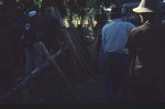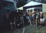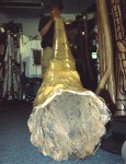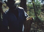 07.00 nästa morgon åt vi frukost, en kort stund senare anlände våra aboriginska guider. Norman, Frank, Mickey, Tom, David, Gary, Ryan och Abraham. Vi fyllde på alla tänkbara vattenflaskor vi kunde hitta innan vi gav oss iväg. Det blev en spännande resa rakt ut i vildmarken. Vi passerade en flod där vi vadade, medan bilarna tog sig igenom vattenmassorna. Våra guider visade oss ett litet vattenfall där vi kunde svalka oss med ett dopp vilket kändes skönt i den 30 gradiga värmen. Efter att ha kört i ca 2 timmar från det att vi svängt av den vanliga vägen stannade vi bilarna och vandrande iväg på jakt efter urholkade träd. Efter ca 10 minuters vandring började vår guide Tom att skala av lite av barken på ett av träden. Han knackade med knogarna och lyssnade med vant öra, det lät lovande. Efter ett par kraftfulla hugg med yxan låg så vår första didjeridu på marken. Vid nästa träd överlämnade Tom yxan åt mig, jag tog bort lite bark, knackade och lyssnade, jodå det lät ihåligt, bara att sätta igång och hugga. Här hade termiterna mumsat ordentligt, trädet var rejält urholkat. Tom bad att få prova mitt blivande instrument, han satte sig ner och började spela. Vi stod alla stilla och lyssnade, ur det som nyss varit ett träd strömmade nu den ur gamla didjeridu rytmen (ditta more ditta more). Jag beslöt mig för att behålla instrumentet som det var, ljudet var helt enkelt perfekt. Alla i gruppen fick hugga sin egen blivande didjeridu. Samtidigt högg våra guider också ned träd som vi senare kunde välja bland om vi så önskade.