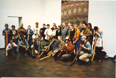1997 arrangerades en stor happening på Götaplatsen i Göteborg, detta i samband med invigningen av den Aboriginska konstutställningen ”Tjukurrpa” i konsthallen. Jag hade tidigare haft en del kontakt och samarbete med Magnus på Göteborgs Etnografiska Museum och han hade nu bjudit in oss till att inviga utställningen. Vi inledde med att spela uppdelade i olika konstellationer först på Götaplatsen och sedan inne i konsthallen.
