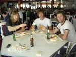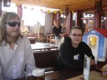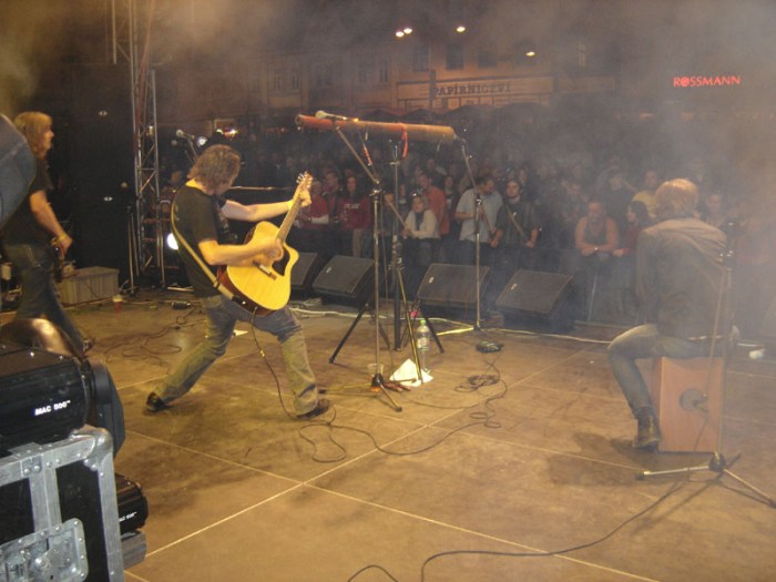 På turné i Tjeckien… Vi lämnade Uddevalla på eftermiddagen den 16 sept med sikte på Trelleborg. Lars, Peter och Alexander samt kameraansvarig Lars Kongstad. Drack öl, vin och käkade ombord på TT-line tillsammans med en massa truckdrivers innan vi slöt ögonen i de obekväma sofforna. Hann med en kopp kaffe innan vi äntrade Autobahn ca 06.30 med sikte på Berlin. Åt god frukost på ett av väghaken innan vi passerade det mäktiga Berlin, nya vägskyltar i skikte, nu Dresden. Dimman låg tät när vi åkte in i Tjeckien nu med den mytomspunna staden Prag i sikte. Vi parkerade blott några hundra meter från med vackra Karlsbron. Vi plåtade och filmade och gjorde allt som turister brukar göra. Vacker stad! Efter resturangbesök och kaffe på Louvre ringde vår promotor för att höra när vi kommer till Dubi. Väl framme bjöds vi på kaffe o mackor innan vi reste till staden Teplice där vi skulle övernatta på ett hotell, eller nja, mer vandrarhem skulle jag säga. Vandrarhem för en jäkla massa bygg och industriarbetare, men va fasen det dög gott och några gamla musikälskare från den svenska västkusten. Han med lite öl på vår promotors gamla klubb, där förövrigt vår kameraman blev uppraggad av en lokal donna! Efter viss möda nästa morgon lyckade vi snurra oss ur staden, en massa gator var avstängda. Klockan 09.00 väntade en skolshow som vi skulle genomföra i Dubi. Hur kul som helst att berätta om och lära barnen att spela didjeridu, vi lirade även ett par låtar. Vi avnjöt därefter öl och kaffe på vår favoritrestaurang i Dubi.