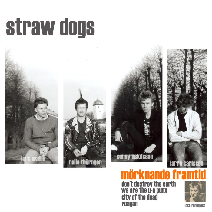 Debutspelningen ägde rum på Orust, Hellevi i Henån på en punkfestival tillsammans med bland andra FattiJons, Orfeus söner, Smuts, Silvias Slavinnor. Spelningen gick väl skapligt, och fler spelningar bokades. Rakan blev nästa ställe, och nu började Straw Dogs så sakteliga bli lokala kändisar, ryktet gick om vilda konserter.