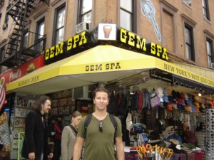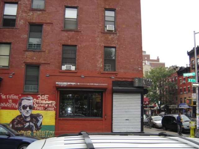 partyn. Vi stannade till vid butikerna Ian’s och Trash and Vaudeville som sålt kläder till Joey och alla de andra ända sedan tidigt 1970′tal. Vi vandrade förbi hak där Jack Keaurac och gänget hängde då det begav sig. Vi vandrade förbi Charlie parkers hus, som ligger granne med huset där Iggy Pop bodde. Vi stannade till utanför Gem Spa där New York Dolls tog bilden som är på baksidan av debutskivan.