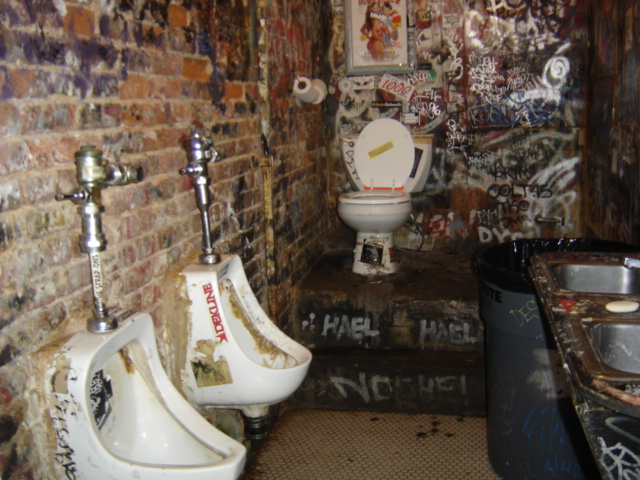 Dag 1. Efter mellanlandning och öl på Shipol i Amsterdam landade vi på det mäktiga JFK Airport i New York helt enligt tidschemat kl 20.10, onsdag kväll! Vi hoppade in i baksätet på en taxi, meddelade adressen 224 East 47th Street, Vanderbilt och lutade oss tillbaks. Vägskyltar med namn som ”Rockaway”, ”Queens” och ”Manhattan” svichade förbi utanför bilfönstet, namn som kittlade fantasin och som i högsta grad hade att göra med målet för resan. Anledningen och drömmen om att besöka Manhattan varierar för oss alla, gissar att för vissa lockar shopping,andra kanske hockey eller gud vet vad, här finns ju allt! För vår del var det chansen att få besöka Punkens vagga CBGB’s innan det den 15 okt stänger för gott. Herregud det var ju här, på Bowery i det lite ruffiga östra Manhattan som den musikstil jag skulle komma att älska mer än någon annan föddes, det var här Dee Dee räknade in 1 – 2 – 3 – 4 för första gången, det var här det var punk! Att det sedan var hit så gott som alla intressanta musiker inom jazz Charles Parker, folkmusik Bob Dylan, författare Jack Keurac osv flyttade kittlade ju bara fantasin ännu mer. Efter att ha checkat in på vandrarhemmet och gjort oss hemmastadda i det lilla rummet bestående av en våningsäng, en byrå samt TV så vandrade vi ner till den lokala matbutiken där vi köpte några öl och flaskor vatten innan vi knoppade in för natten.